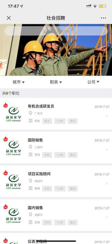 利爾化學(xué)招聘